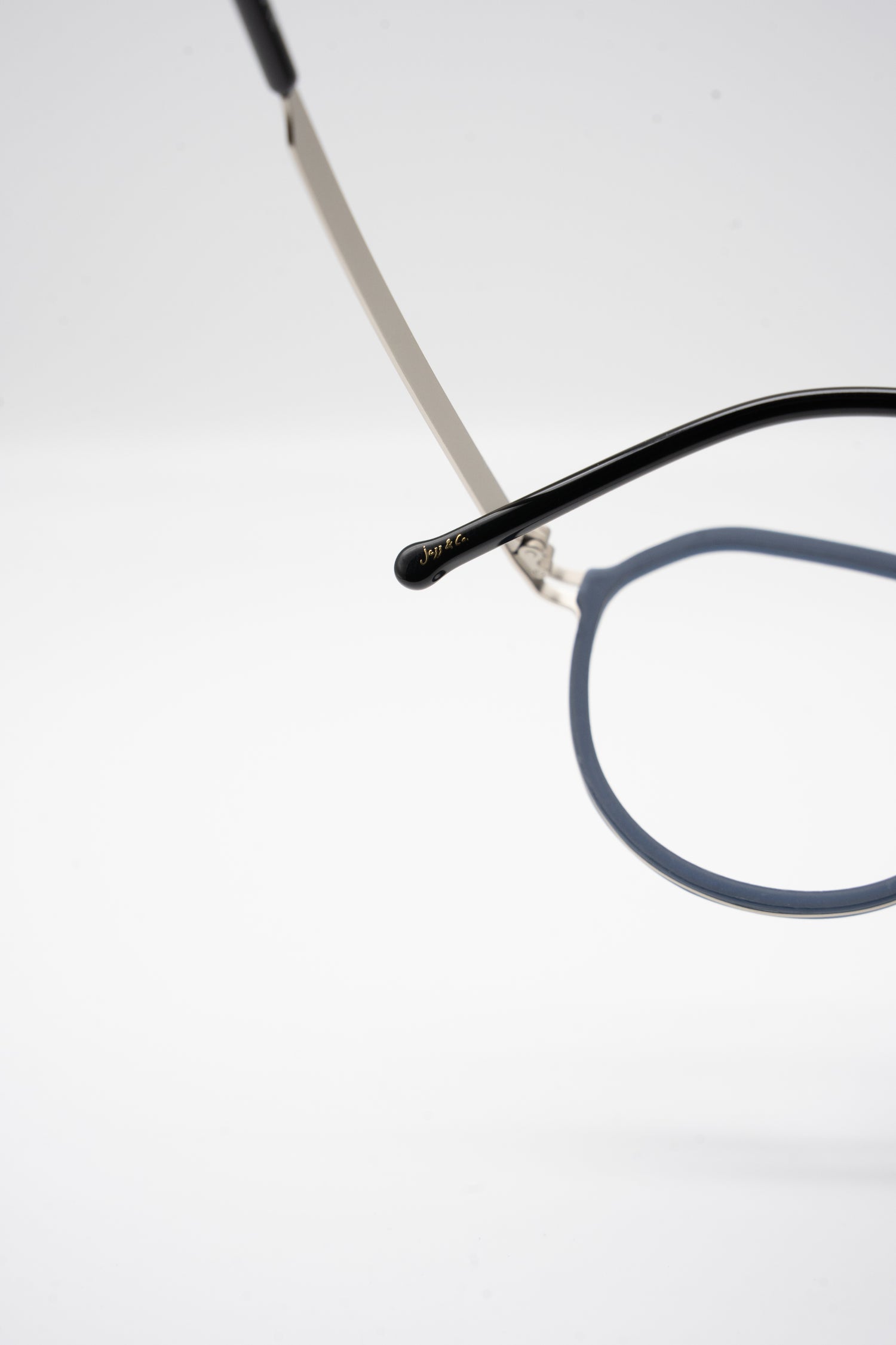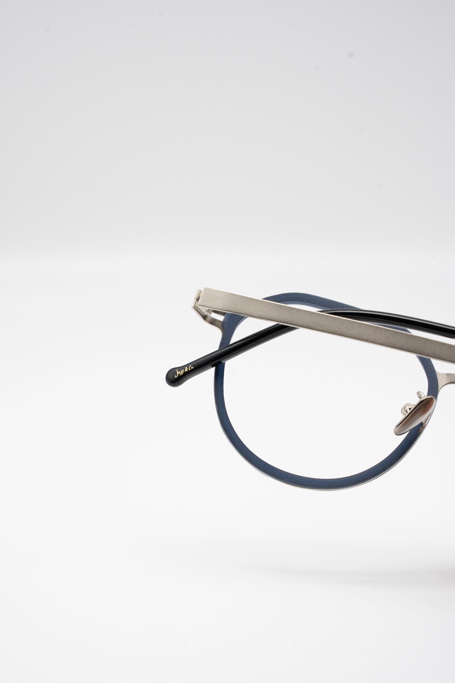 O Andrew combina estrutura metálica fosca com frente em azul metálico, resultando em um contraste discreto e sofisticado. O formato arredondado expansivo oferece ajuste confortável e proporção equilibrada, ideal para quem busca leveza sem abrir mão de presença. As pontas das hastes em acetato fino garantem toque agradável e estabilidade