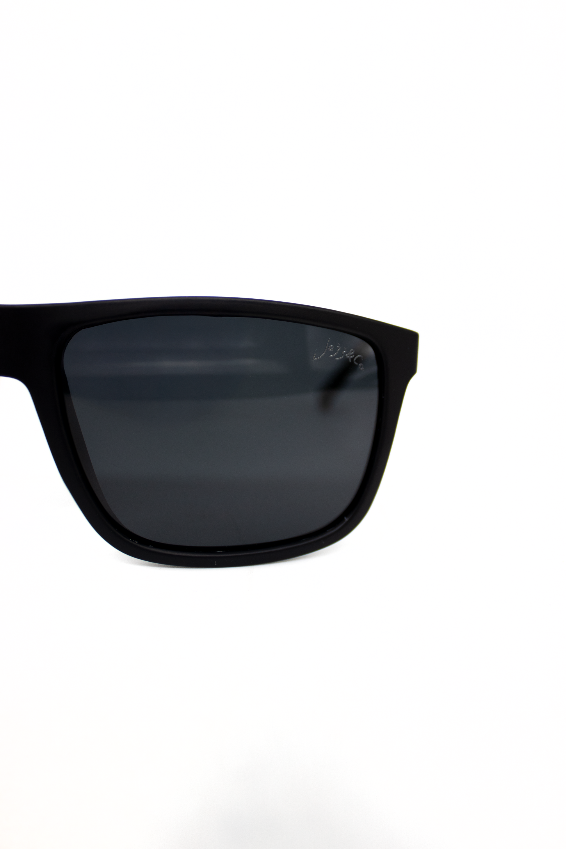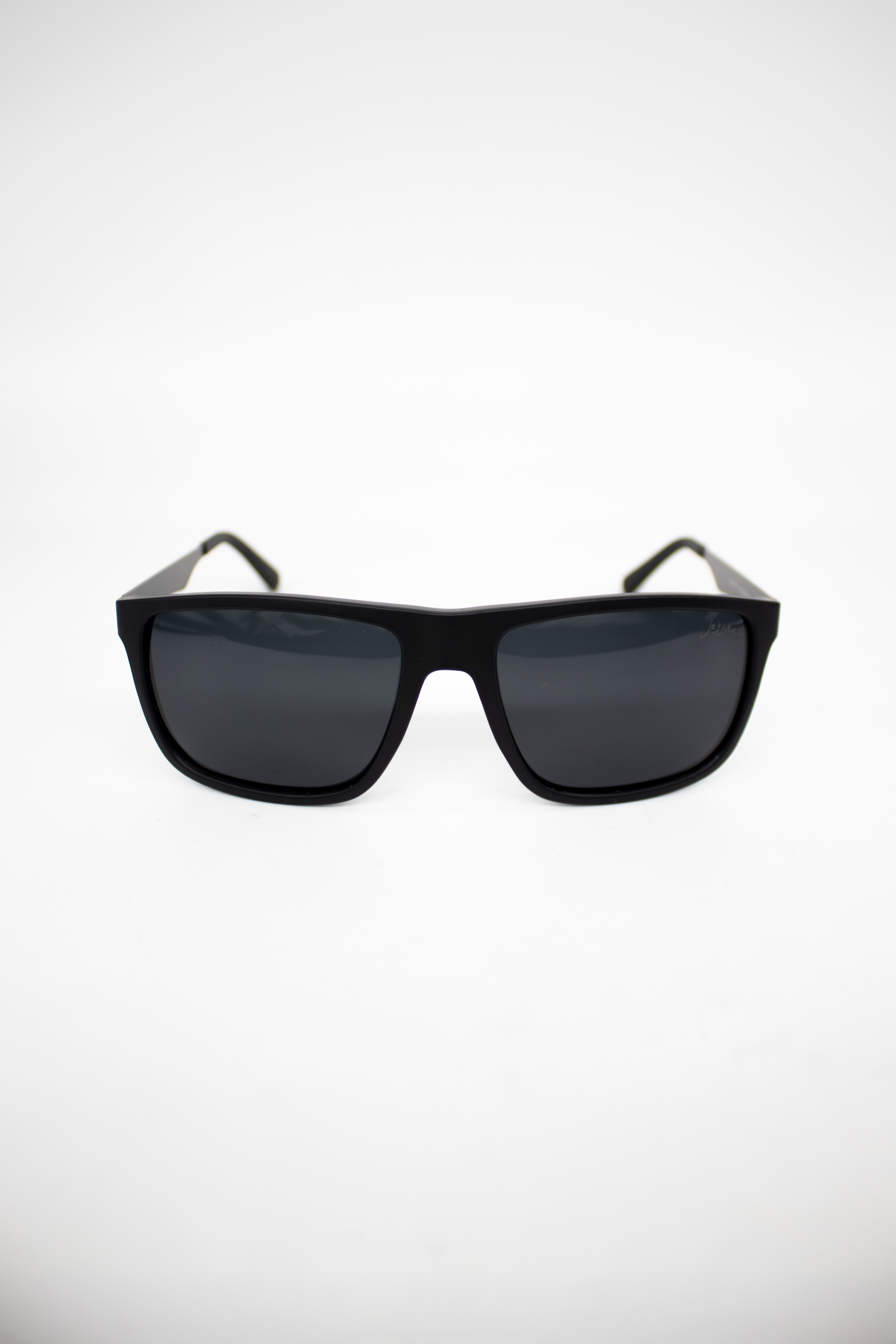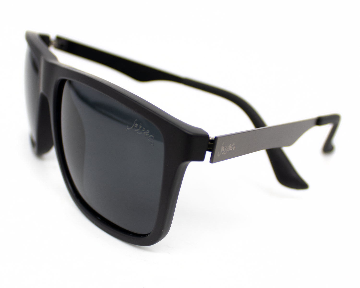 Armação retangular em acetato preto fosco, feita com proporções precisas e espessura mediana, garantindo encaixe confortável, solidez e equilíbrio visual. Suas linhas firmes e angulares valorizam a estrutura facial, enquanto as hastes com estrutura metálica visível adicionam um toque técnico e elegante, reforçando durabilidade e sofisticação funcional.