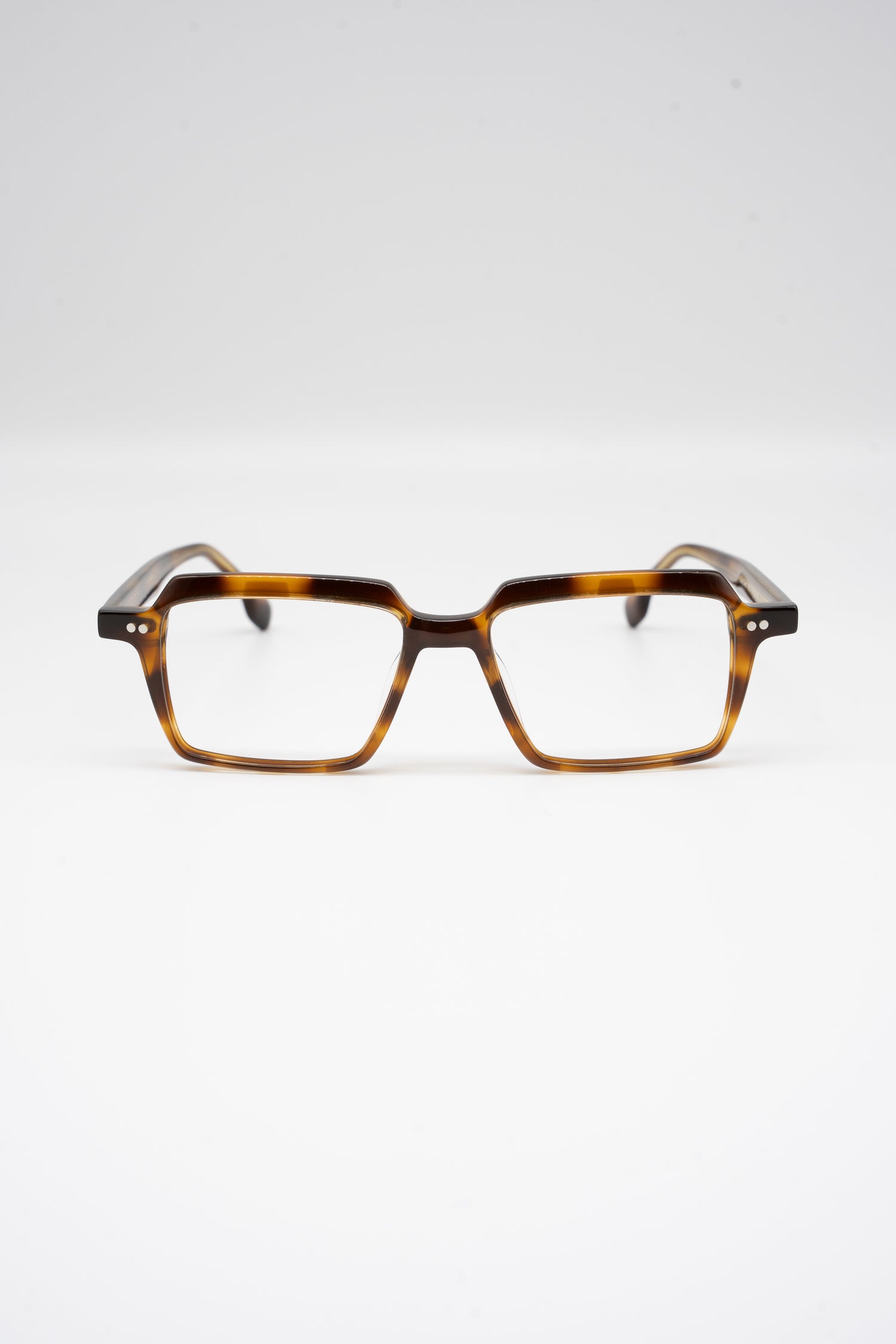 O Judy é uma armação geométrica em acetato demi âmbar, marcada por linhas firmes e espessura escultural que proporcionam presença e estrutura visual. Seu design anguloso, com leve transparência e brilho quente, garante encaixe estável e confortável em rostos médios, unindo precisão estética e conforto ergonômico