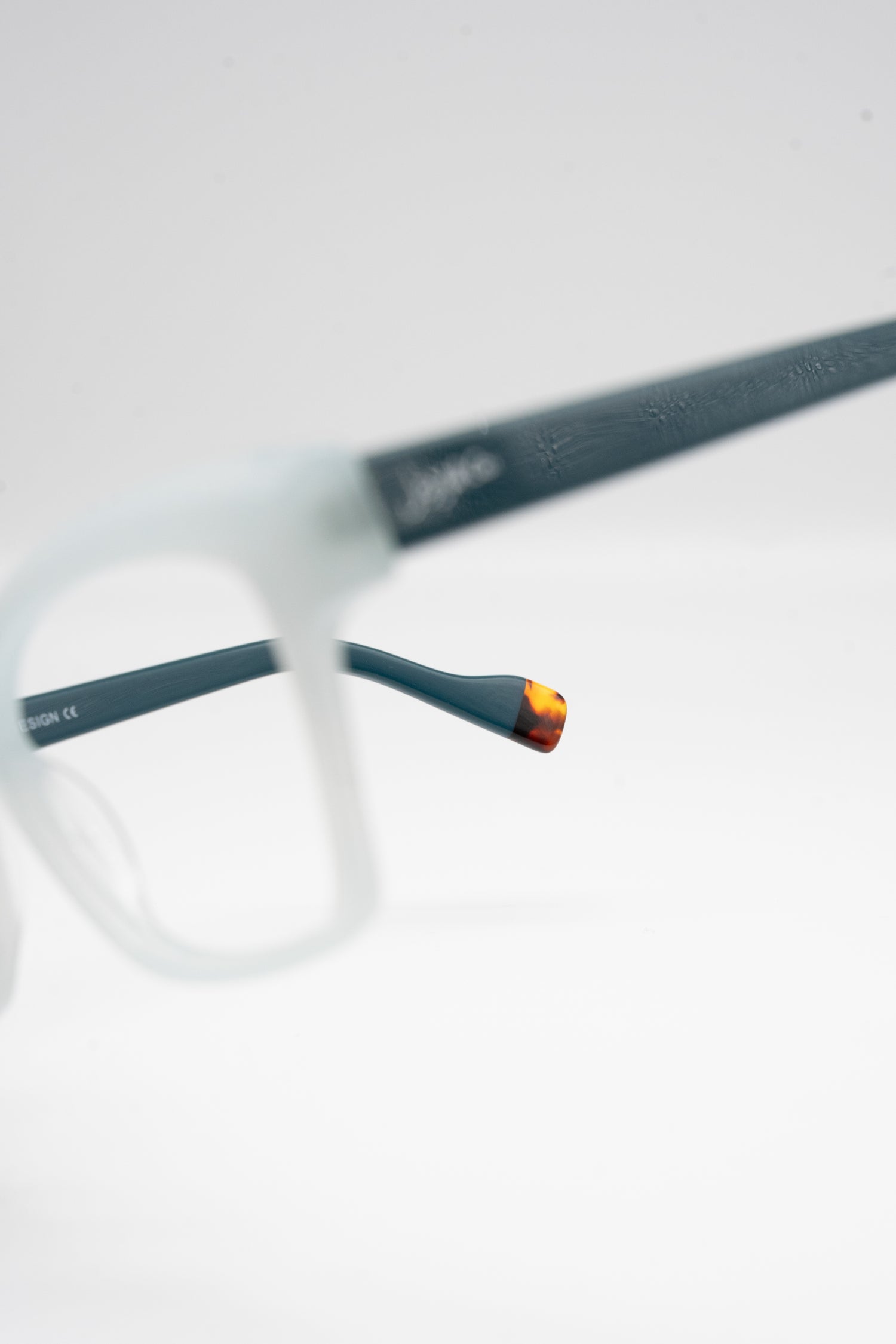 Armação em acetato azul esculpido, de design expressivo e estrutura equilibrada entre ângulos e curvas. Seu formato meio quadrado com linha superior levemente ondulada garante ajuste confortável e visual marcante, ideal para quem valoriza leveza, durabilidade e compatibilidade com lentes graduadas. O acetato premium assegura brilho, estabilidade e conforto térmico, oferecendo sofisticação técnica com autenticidade visual.