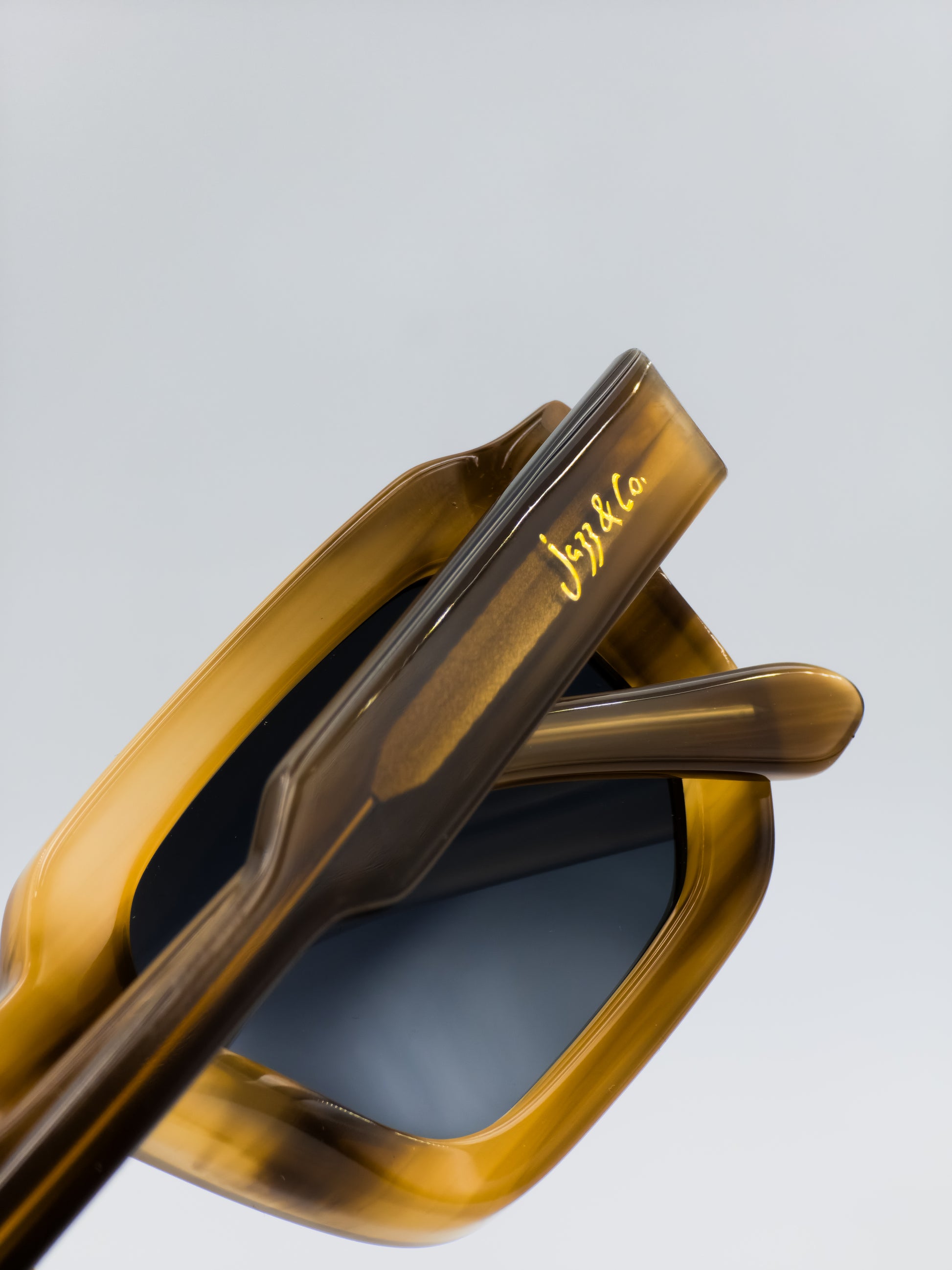 O Tribeca Brown é um solar geométrico bold em acetato premium italiano, que combina estrutura robusta e equilíbrio visual. A frente em marrom translúcido com nuances quentes evidencia o trabalho de volume e polimento do acetato, enquanto as hastes espessas reforçam o caráter brutalista e sofisticado do design.